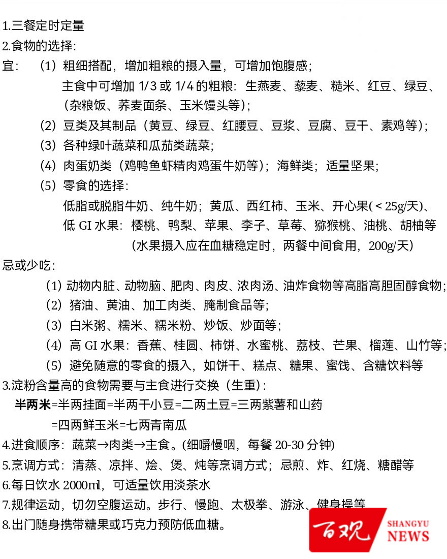 “三餐要定時(shí)定量,建議采用“蔬菜-肉類-主食”的進(jìn)食順序,每日飲水不少于2000毫升”,上虞人民醫(yī)院營養(yǎng)科醫(yī)生楊柳說。減肥三分靠運(yùn)動(dòng),七分靠飲食,醫(yī)生建議少吃油炸食物等高脂高膽固醇食物,白米粥等高GI食物,香蕉芒果榴蓮等高GI水果,避免隨意攝入零食。