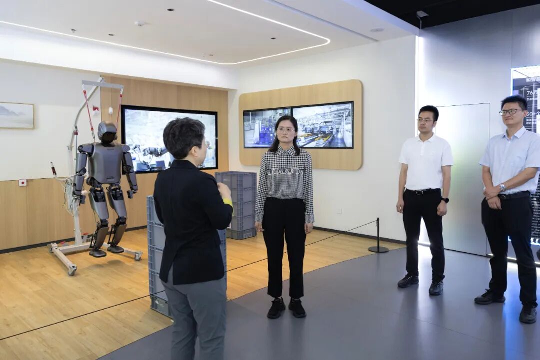 深圳優必選是廣東機器人“七劍客”之一,歷經13年發展,已成為全球人形機器人領域的領軍者。余丹一行來到企業展廳,現場觀看人形機器人演示,深入了解“AI+產業”生態布局及人工智能產業應用情況,并向企業負責人介紹了我區布局具身智能產業的創新路徑。她表示,上虞正大力實施“人工智能+”戰略,加快構建“整機本體生產+場景應用+核心零部件生產”的產業鏈生態,要充分學習借鑒深圳人工智能的先進經驗,加強與優必選等頭部企業的深度合作,推動人工智能多場景應用,打造具身智能機器人產業樣板,以人工智能推動產業升級換代、跨越式發展。