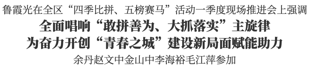 4月12日上午,全區“四季比拼、五榜賽馬”活動一季度現場推進會召開。市委常委、副市長、區委書記魯霞光講話,區委副書記、區長余丹主持,區領導趙文中、金山中、李海裕、毛江萍等參加。