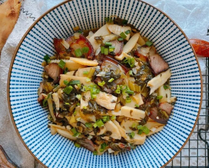 是咸香撲鼻、油潤(rùn)下飯的冬筍炒臘肉?