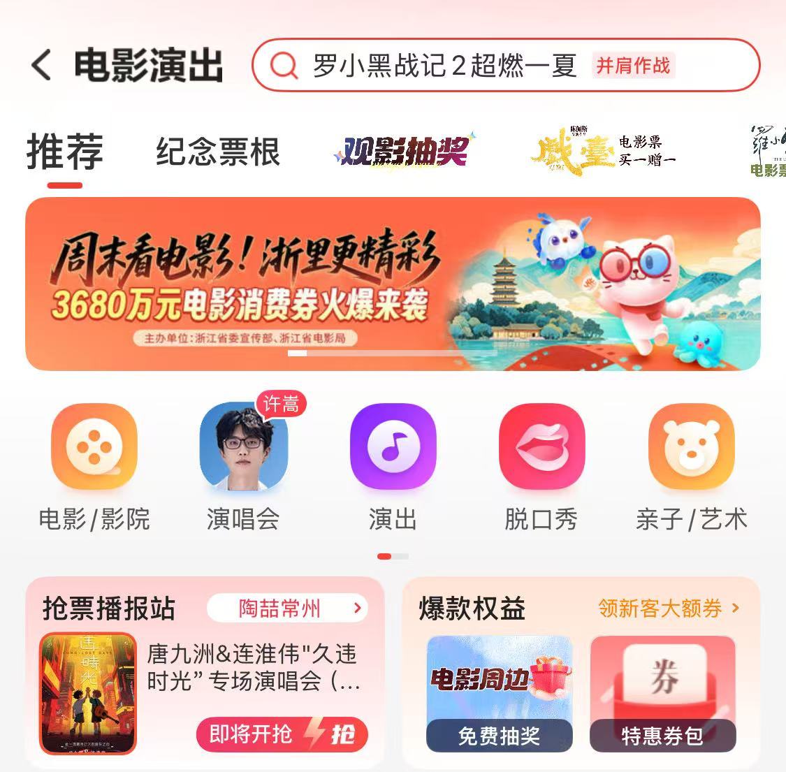 上虞人可在貓眼App、美團(tuán)App-電影/演出、微信App-支付-電影演出賽事等平臺(tái)搶券。