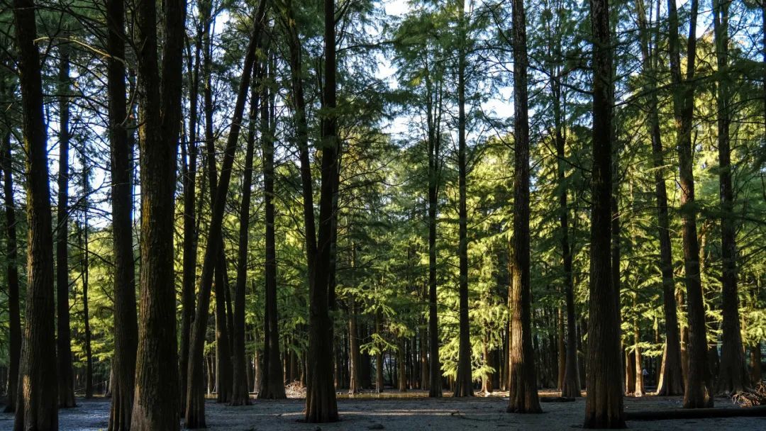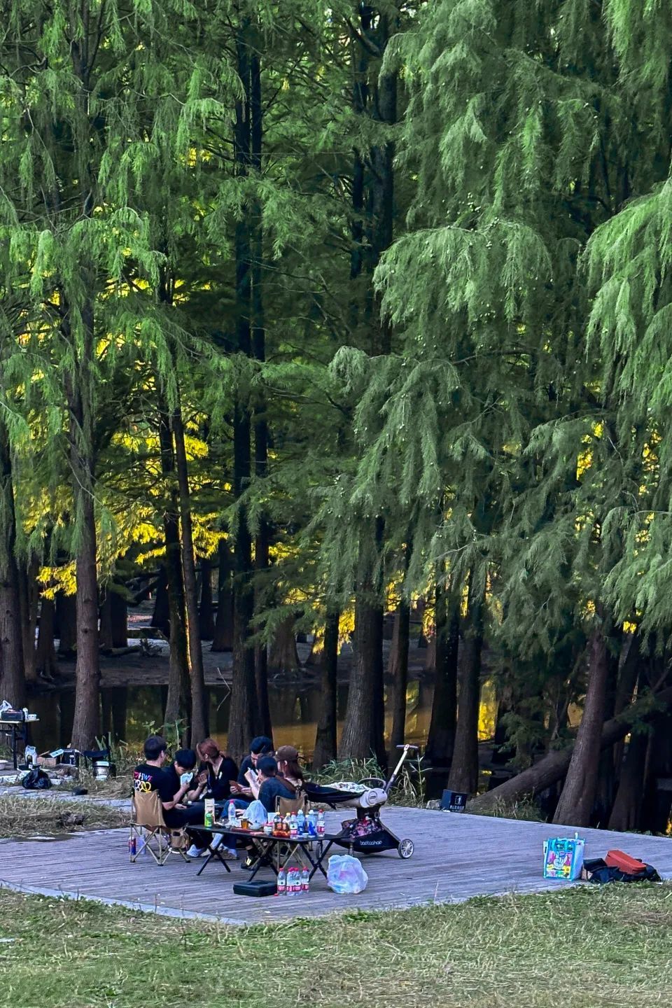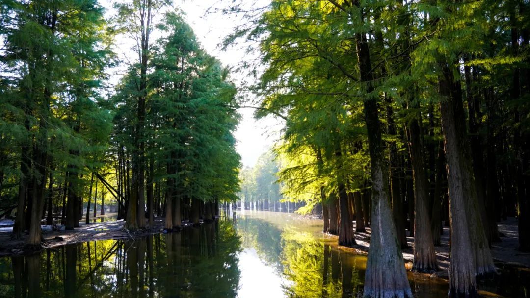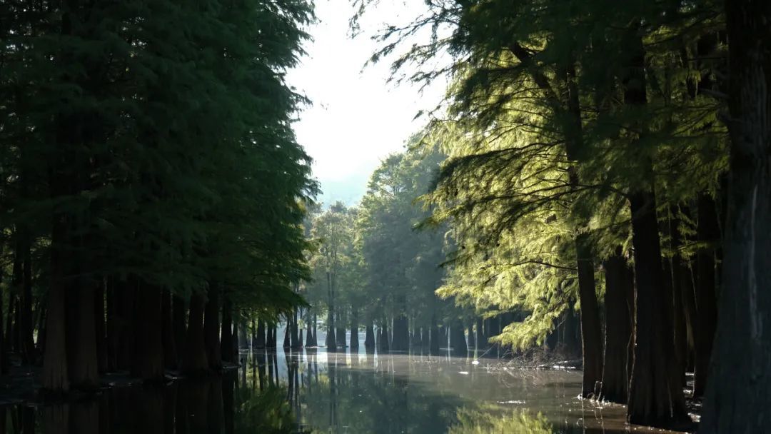 許光漢《悅游》雜志同款取景地,成片的水杉林生長在這里,如同一副大自然的油畫,傍晚的霞光透過層疊的枝葉散落在地上,水上森林的氛圍感直接拉滿。